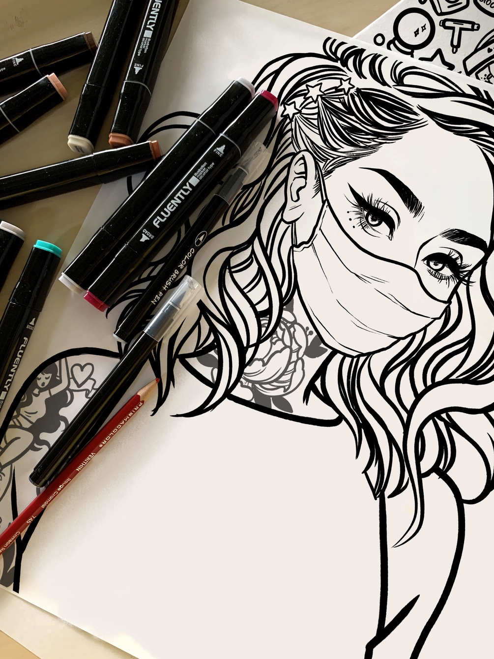 I wanted to create some fun stress relieving products that are free to anyone who wants it, pay what you want if you have the means, but don’t feel obligated! You will receive an 8.5x11” jpeg of a black and white coloring page, save it to color digitally or print it out! If you have a printer that is capable, you can even print it out on watercolor paper to paint on for fun! Please do not redistribute this copyrighted image, if you are posting the colored image on social media please do not claim it as entirely your own creation, be sure to tag jacquelindeleon or whaojackie on twitter and give proper credit, thank you!